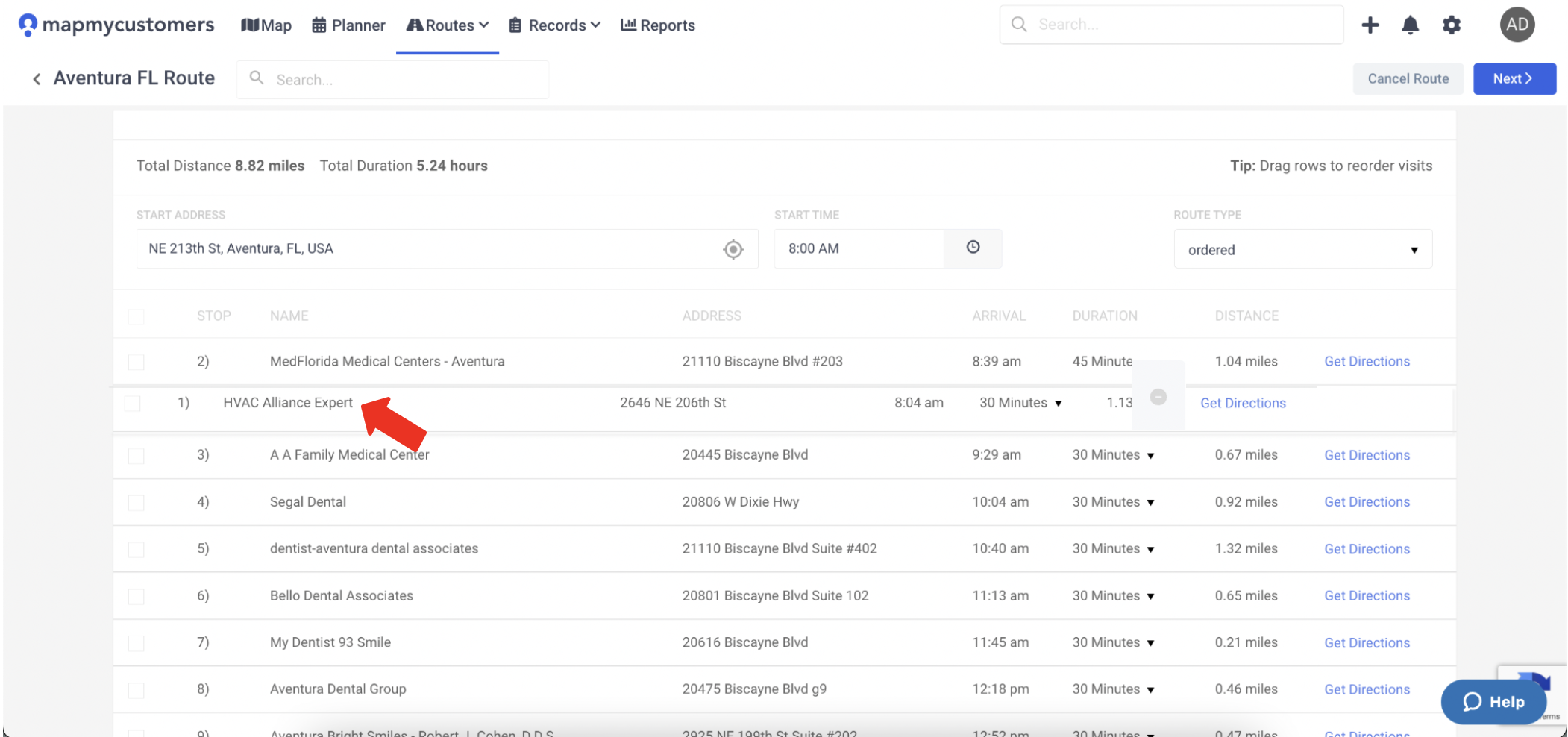 You can edit the route details, change the route order, remove a stop altogether, add additional stops to the route, or use the Lead Generation tool to find new prospects to add directly to your route.